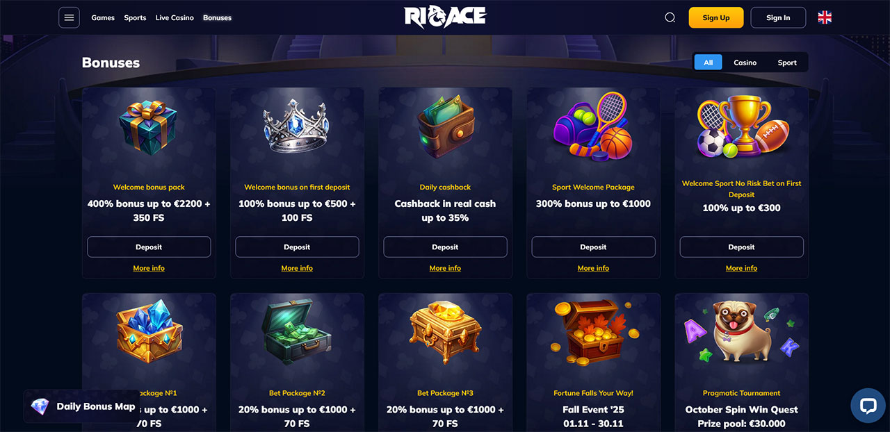 | Bonus powitalny: | 400% do 9370 zł + 350 darmowych spinów |